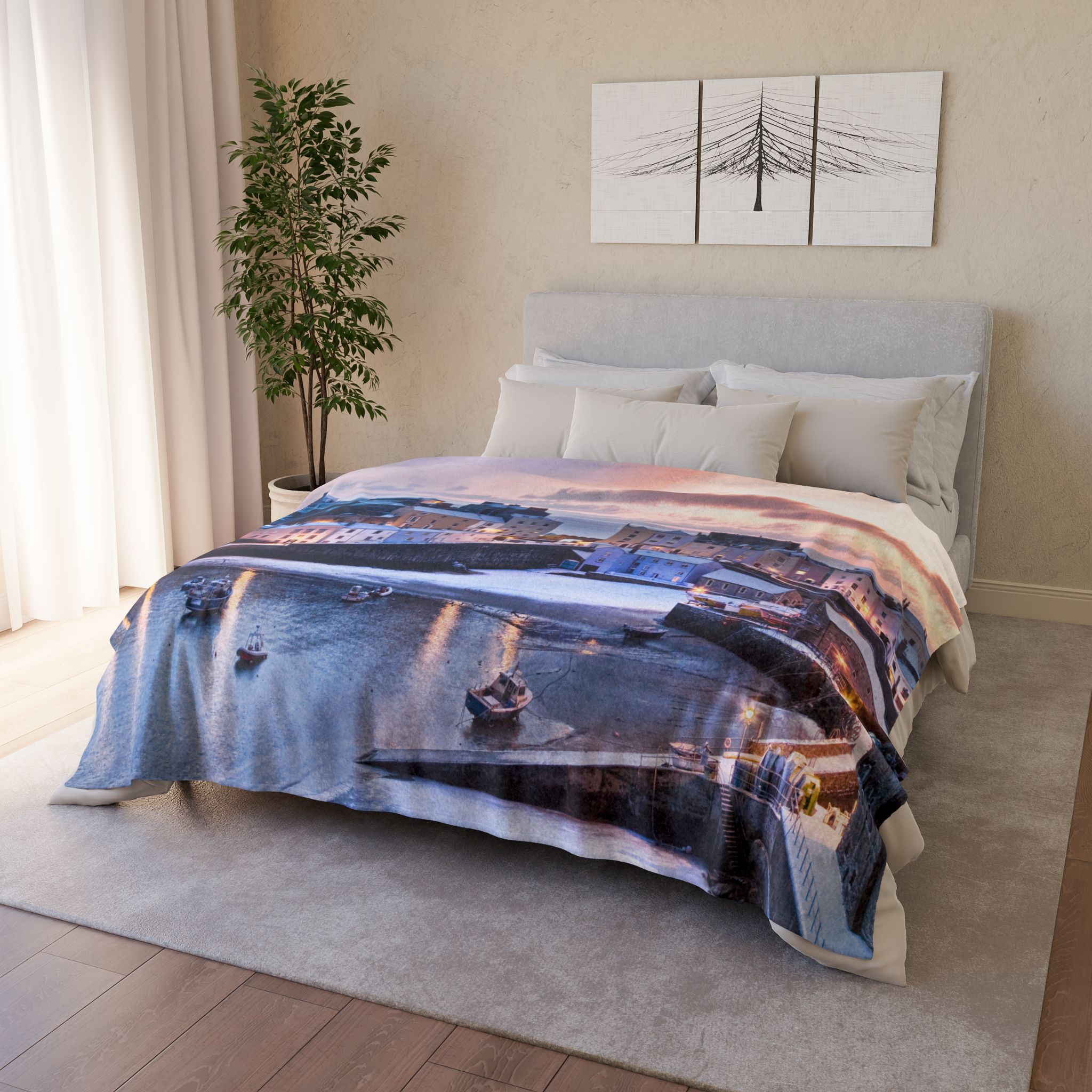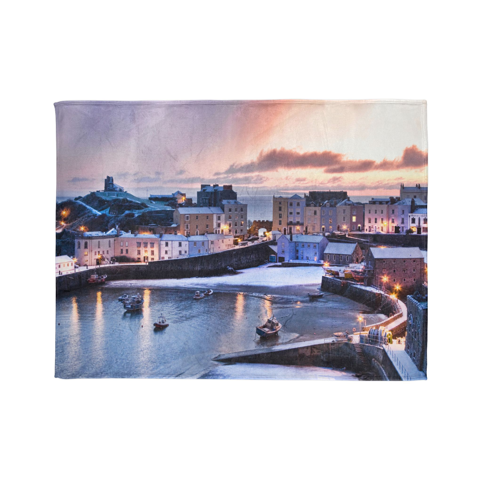 Ben Fecci Tenby Harbour in Winter Minky Blanket