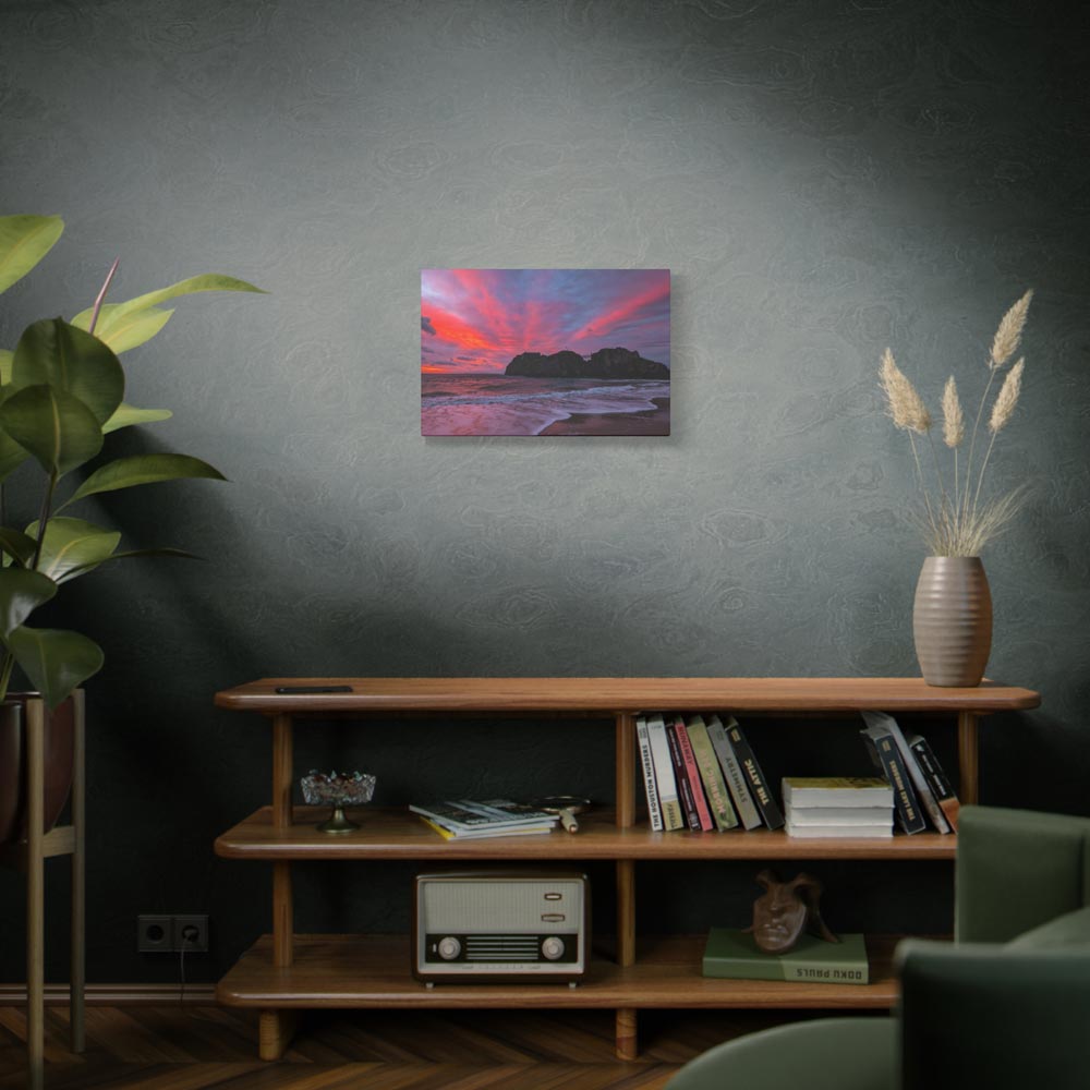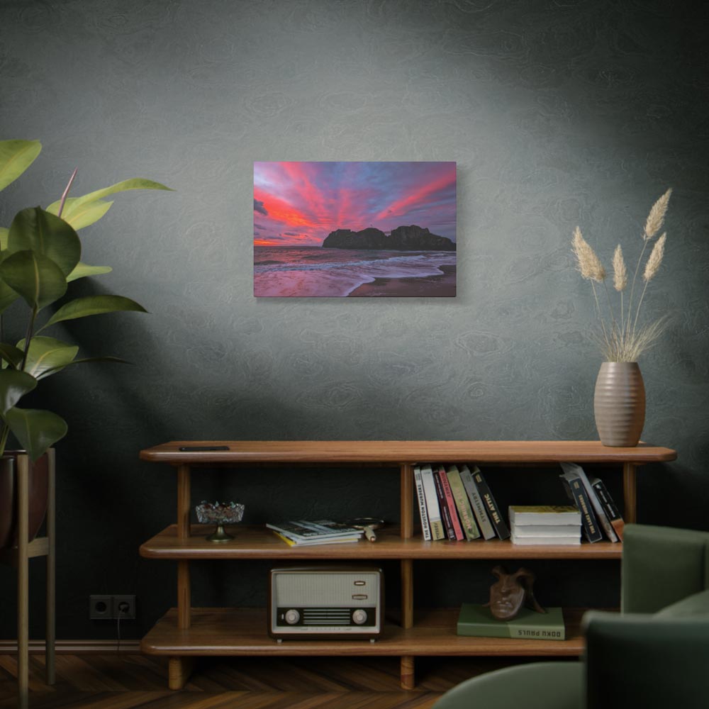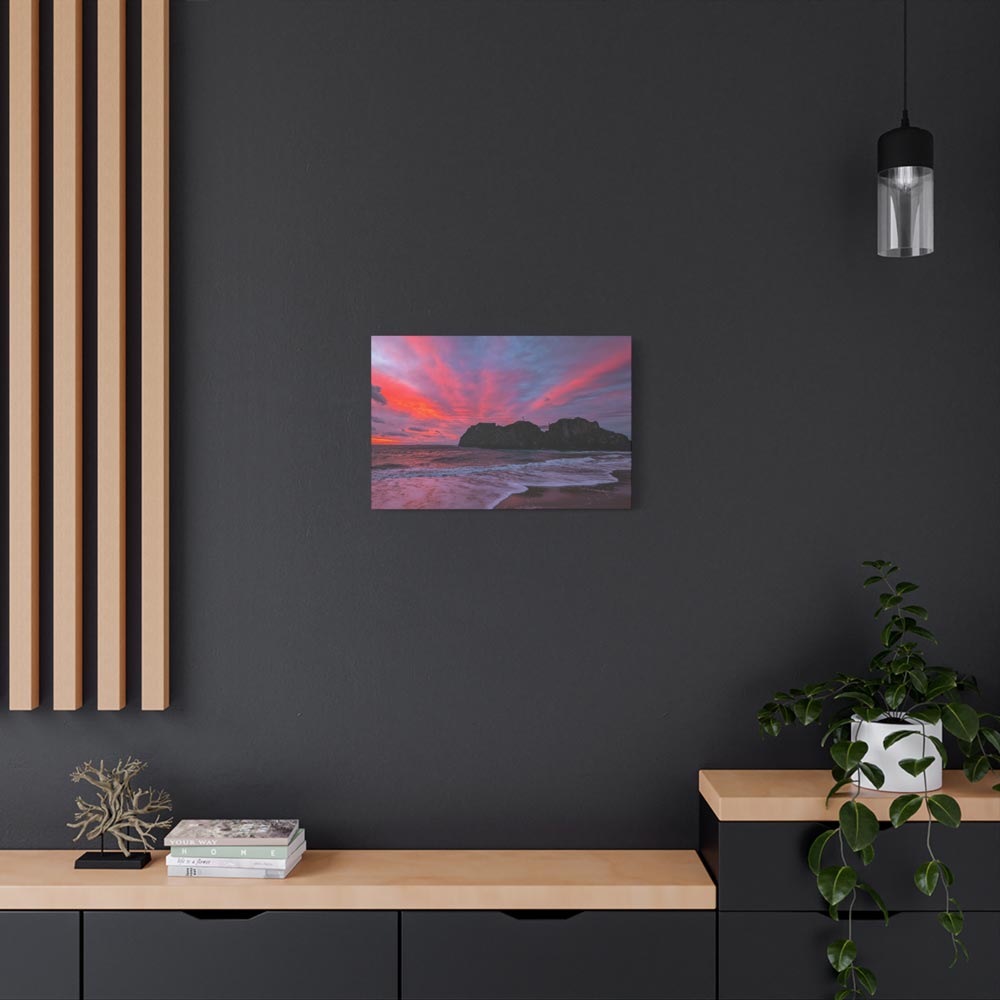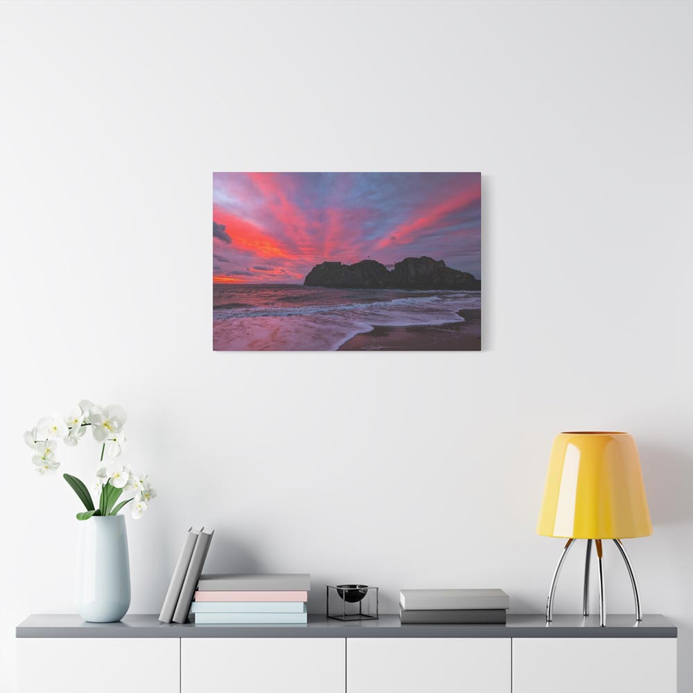 Bring home “Flaming Skies Over St Catherine’s Island,” a mesmerising canvas print by Lucy Crockford that captures the iconic island under a spectacular pink and red sunset. Available in three sizes – 16″x12″, 24″x16″, and 30″x20″ – each canvas arrives ready to hang with a solid, sustainably sourced pine frame.