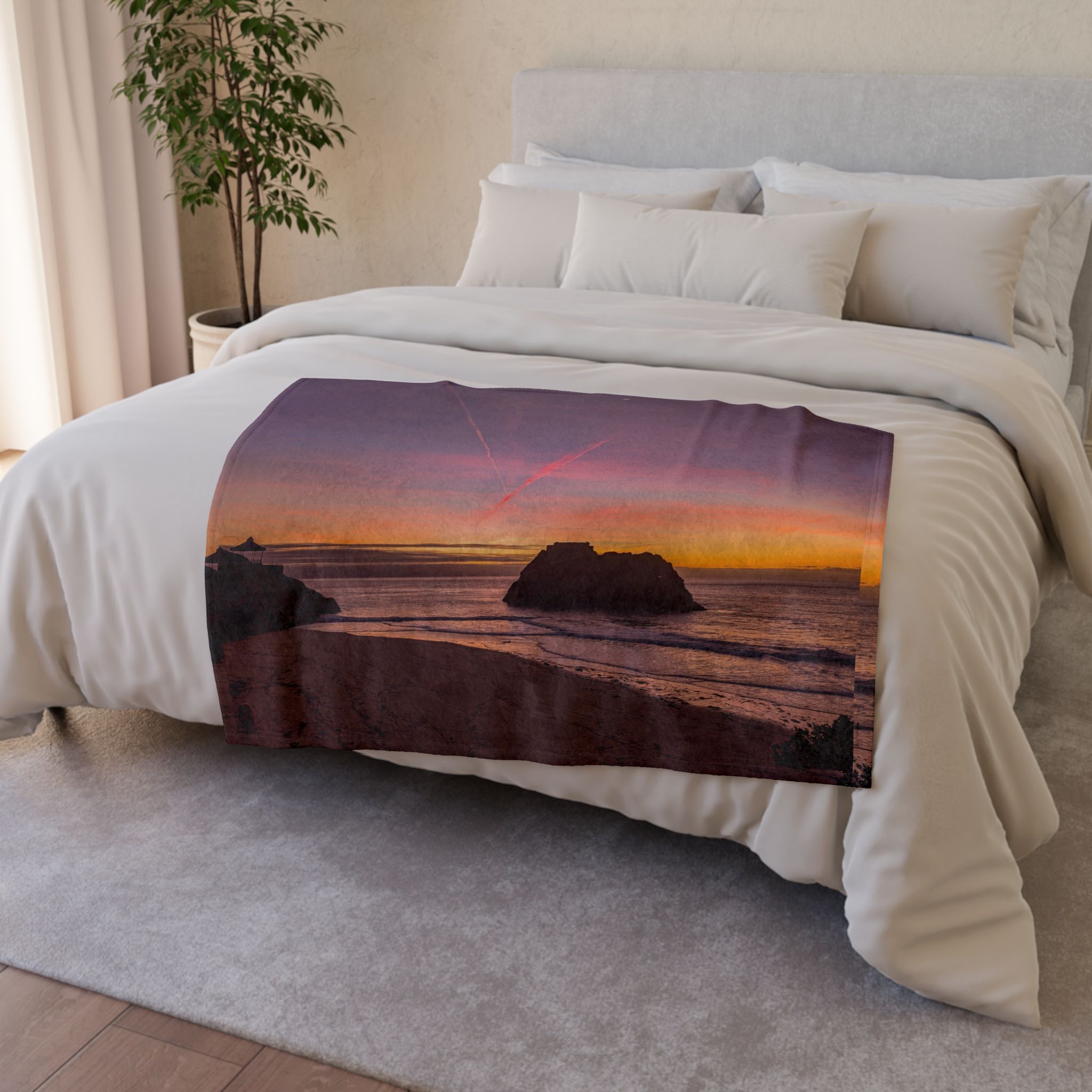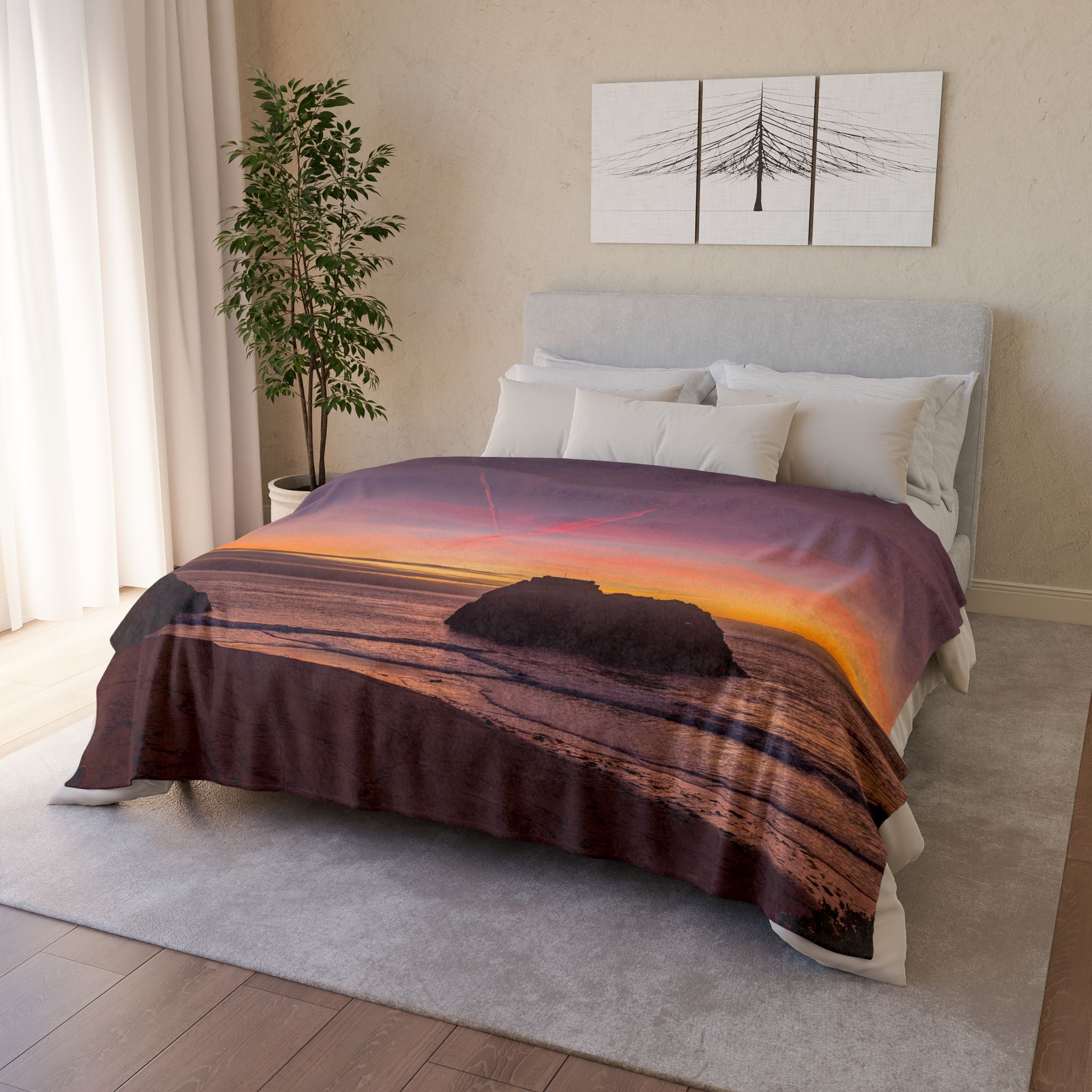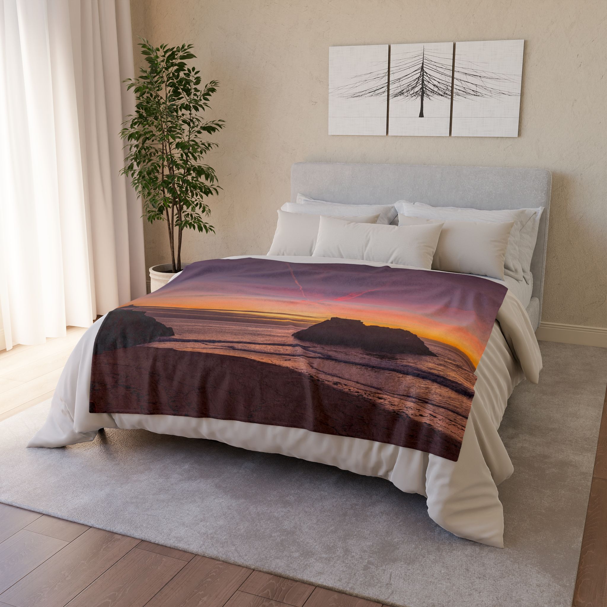 Enjoy the beachy vibe with this soft polyester blanket featuring a serene sunrise image from Lucy Crockford of St Catherine’s Island. Perfect for nature lovers looking to bring a cosy and calming atmosphere into their homes. Ideal gift for those who enjoy lap blankets and home decor. Relevant for beach holidays, nature observances, and cosy nights in.