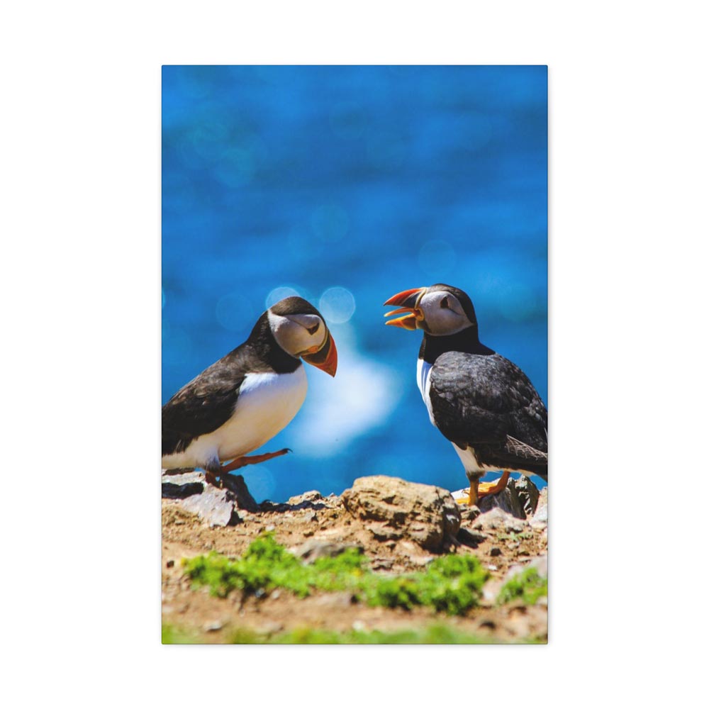Puffin Chatter – Canvas Print by Lucy Crockford