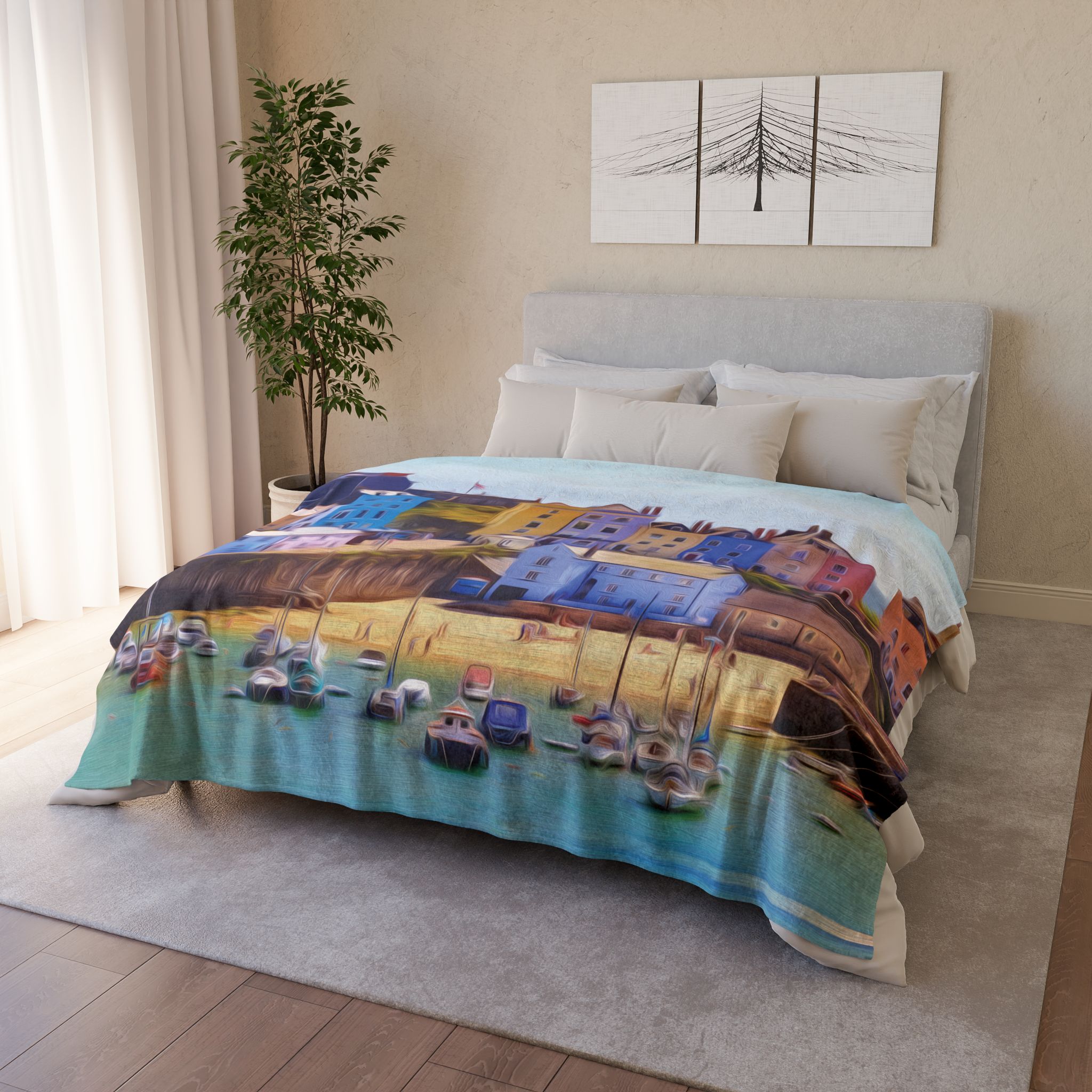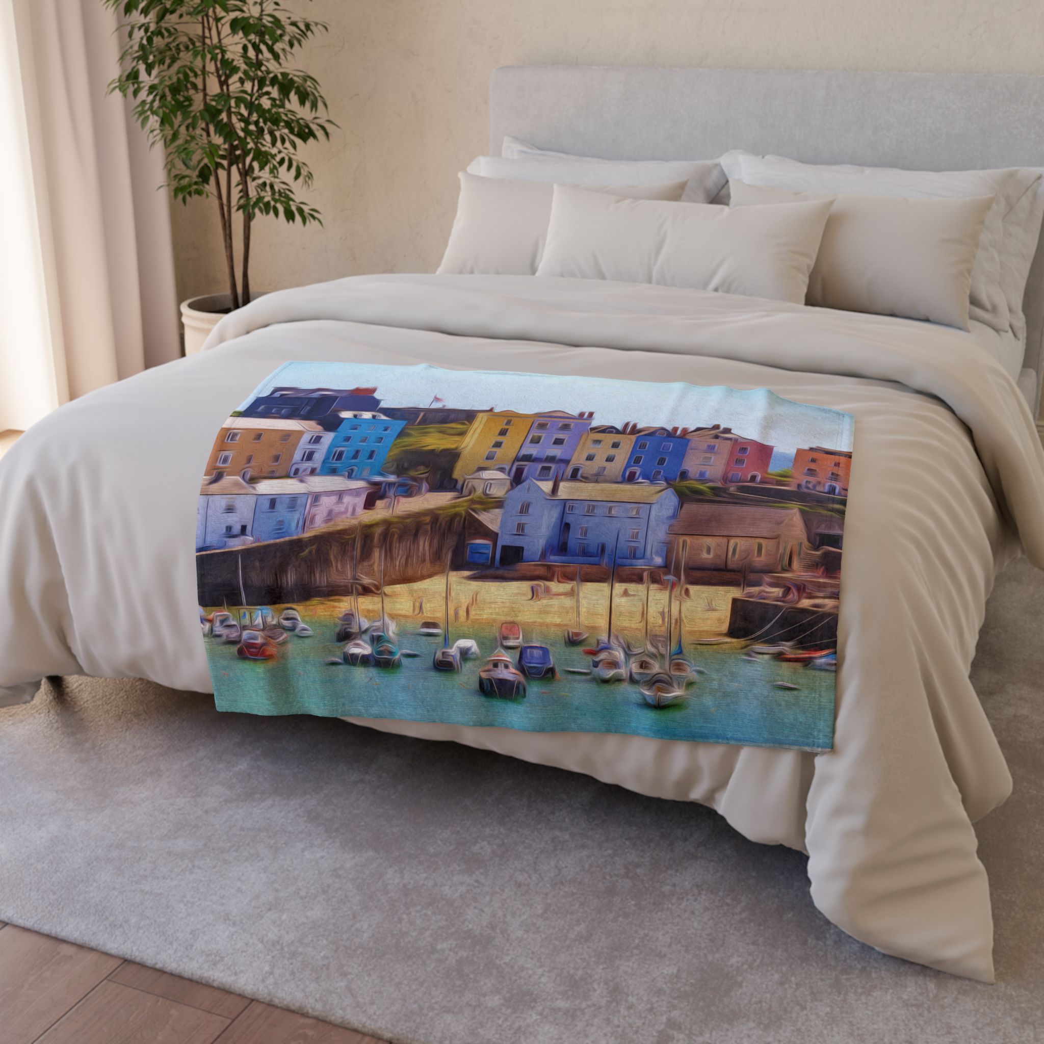 Embrace the coastal nostalgia of Tenby Harbour Beach and elevate your comfort with our Tenby Harbour Beach Oil Painting Style Minky Blanket. It’s more than just a blanket; it’s a piece of art that envelops you in the serene beauty of this coastal paradise.