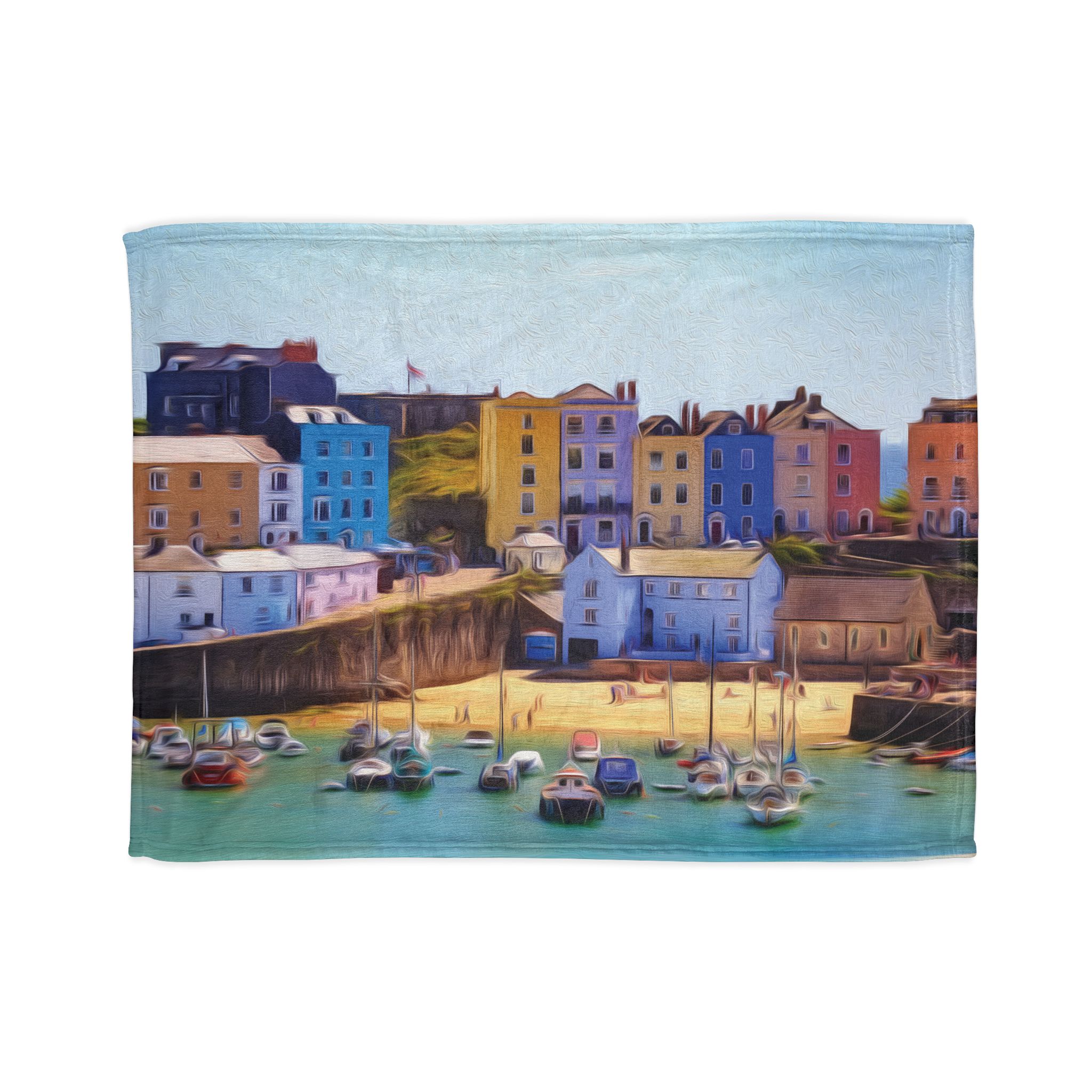 The one-sided print features an intricate scene of Tenby Harbour Beach that captures every detail of this coastal gem. From the boats gently swaying in the harbour to the picturesque shoreline, the blanket immerses you in the serene ambience of Tenby Harbour Beach.