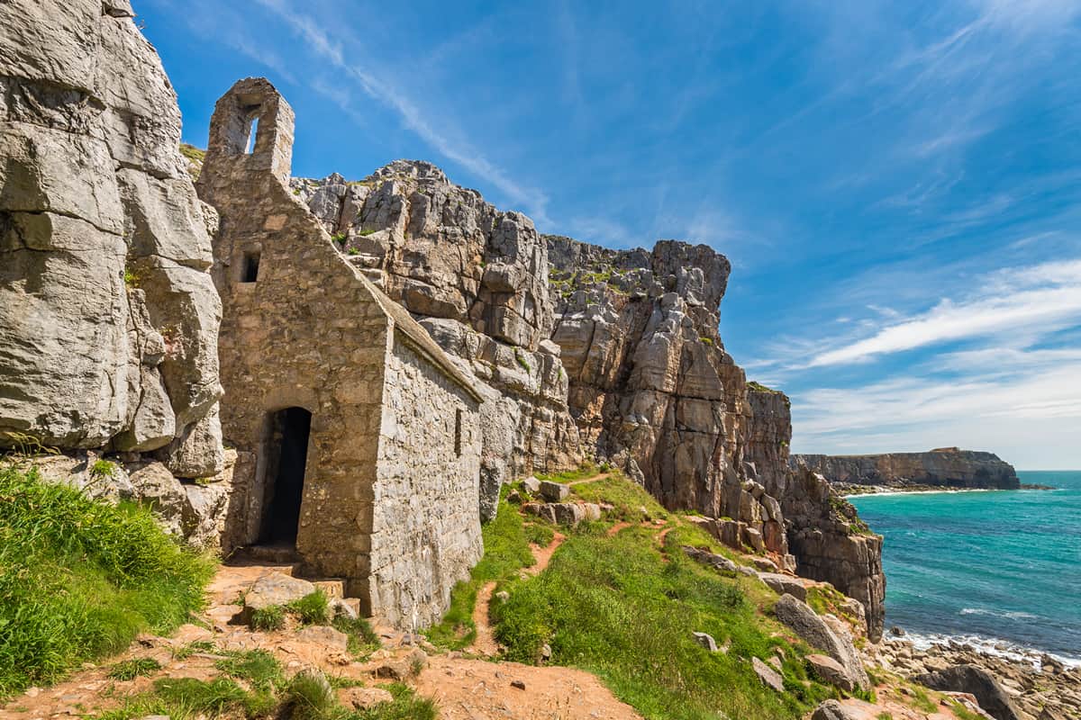 This Pembrokeshire walk explores the spectacular coast between St. Govan’s Chapel and the Green Bridge of Wales. The route has restricted opening due to MOD training on the ranges. (So always look out for the red flags). The route follows the Pembrokeshire Coast Path and is well-signed.